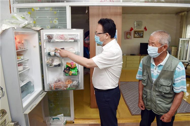 在图们市石岘镇河北村,景俊海来到金哲柱家中,打开冰箱查看,详细了解生活情况。